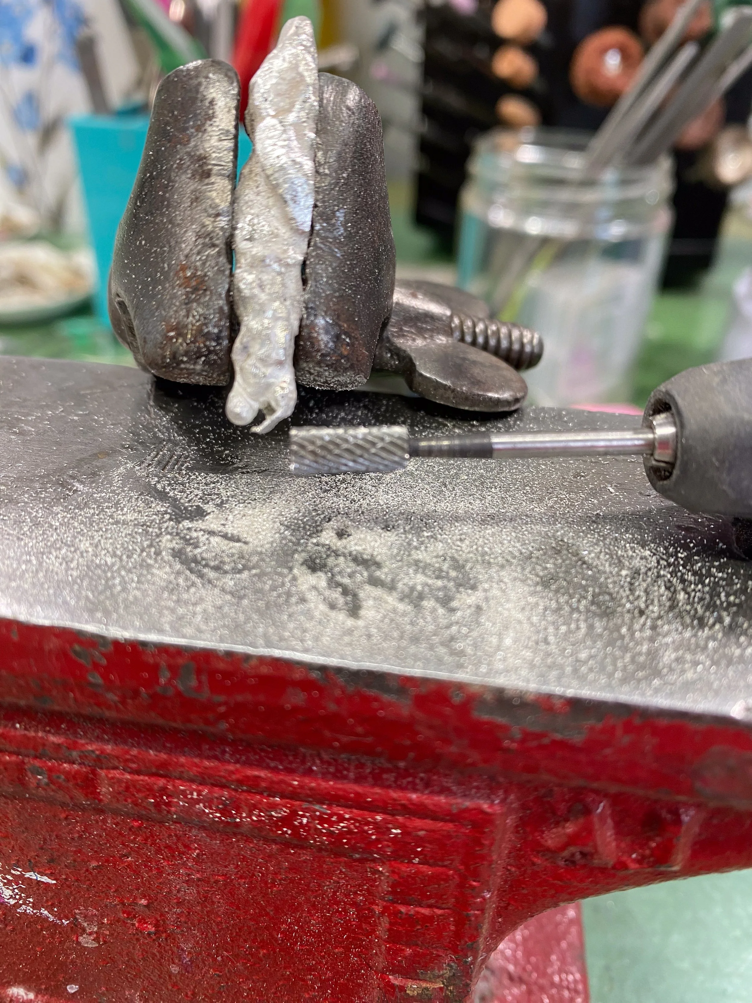 There are many different ways to texture and and shape silver. Among the techniques I generally use are engraving , fusing, carving, stamping and hammering to add texture, shape and interest to a piece